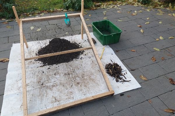 A nagy mennyiségű szármaradvánnyal borított talajt begyűjtöttük és alapos keverés/homogenizálás után ládákba töltöttük. A ládák töltőtömege 30 kg volt.